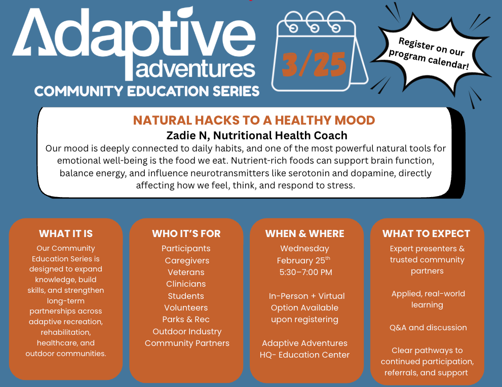 We’re taking a look ahead at Adaptive Adventures’ 2026 calendar of programs and events, sharing what’s coming and how our offerings continue to grow and evolve. We’ll also dive into the development of our Education Series and give a sneak peek at the Adaptive Adventures Basecamp App—designed to better connect, inform, and support our community.